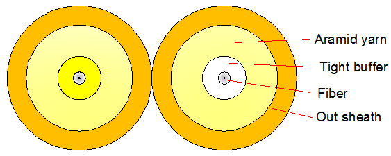 Simplexkabel gebruikt Φ600μm of Φ900μm strakke buffervezel als optisch communicatiemedium. De strakke buffervezel omwikkeld met een laag aramidegaren als sterkte-elementeenheden, die het meest wordt geëxtrudeerd om een laag (PVC) of rookarm halogeenvrij materiaal (LSZH, rookarm, halogeenvrij, vlamvertragend) te produceren.